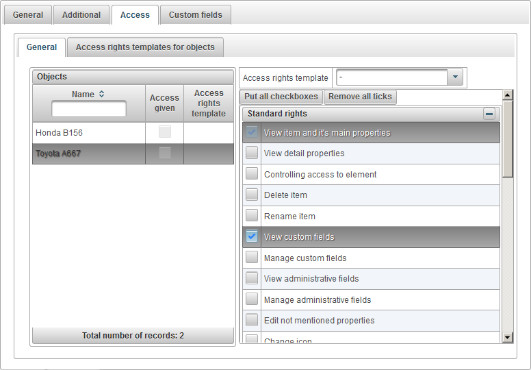 Orodha ya paneli zinazopatikana inategemea haki za mtumiaji na interface iliyochaguliwa (interface ya interface au interface ya meneja).